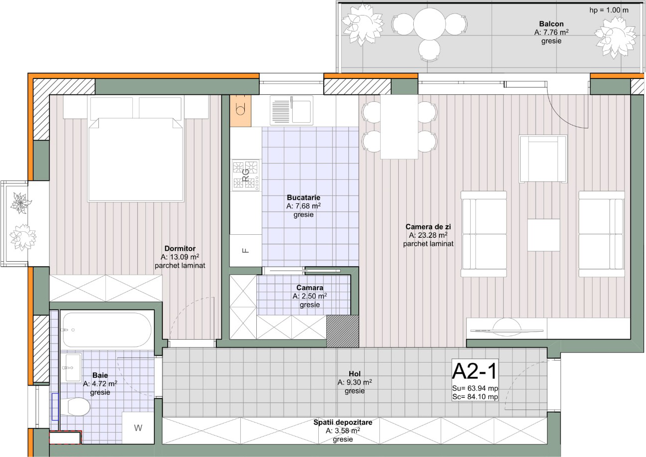 Depozitare = 3.58 m²