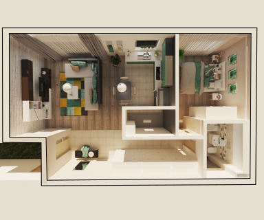 Cu o configurație aparte, acest apartament cu două camere este perfect adaptabil nevoilor tale.