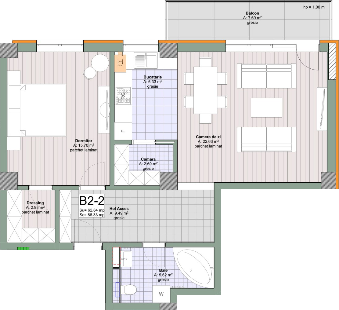 Ai o cameră de zi ultra spațioasă, finisaje atent alese, și spații de depozitare adecvate nevoilor tale.