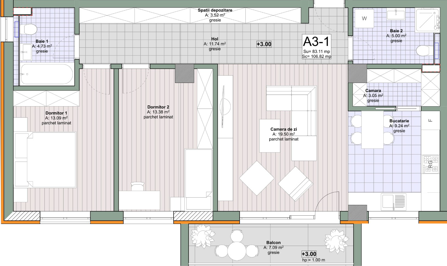 Suprafață totală: 83.11 m²