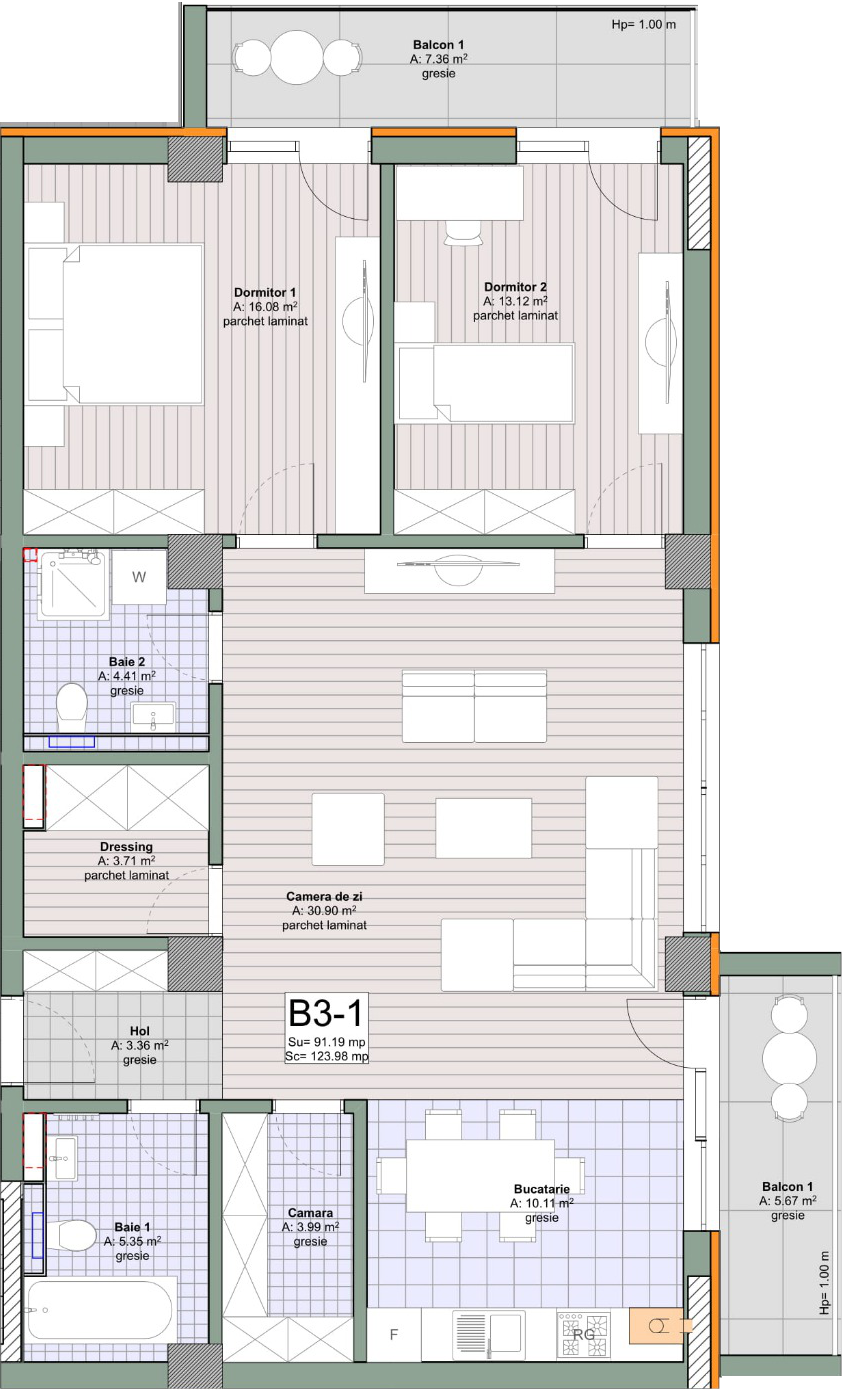 Suprafață totală: 91.19 m²