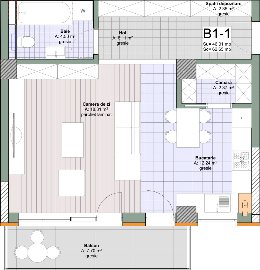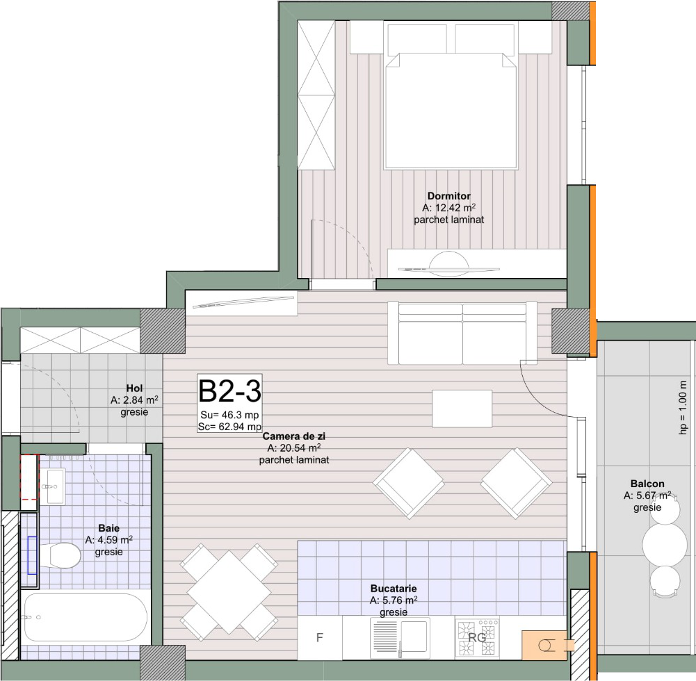 Suprafață totală: 46.01 m²